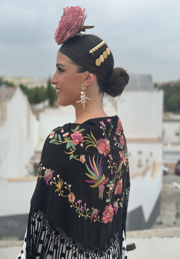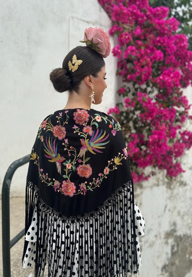 Mantón Pájaros Fondo Negro